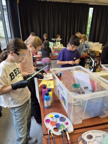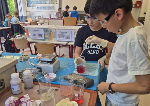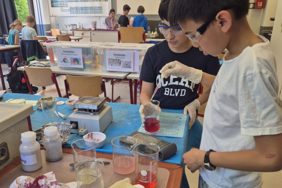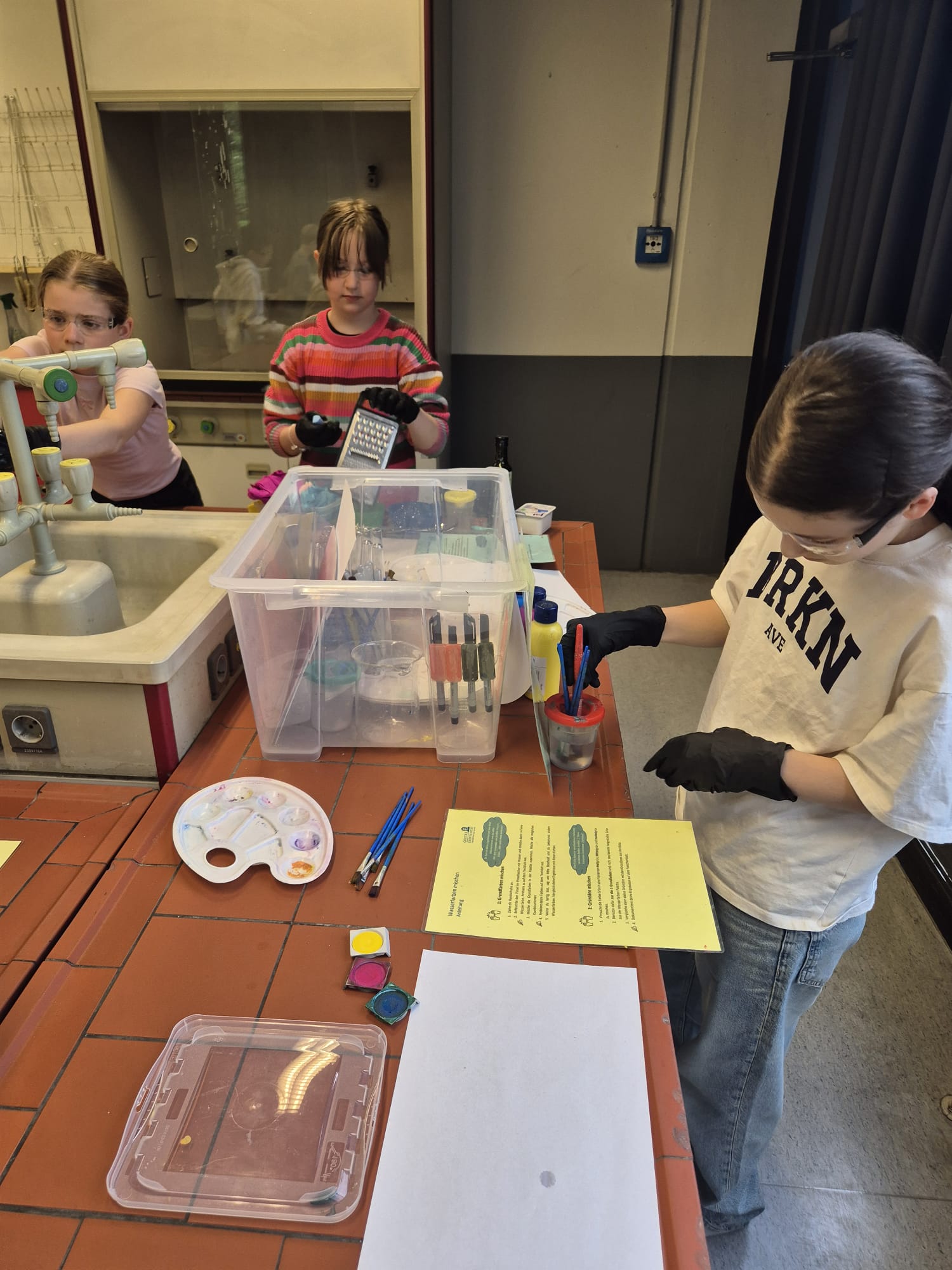 Nach den Osterferien war es dann soweit: Die Forscherboxen zogen ein! An insgesamt sechs Dienstagen experimentieren die Kinder in selbst gewählten Kleingruppen mit verschiedenen Boxen – jede widmet sich einem anderen naturwissenschaftlichen Thema rund um das Oberthema „Farben“. Die Lernenden dürfen dabei nach Interesse wählen, welche Fragestellung sie am jeweiligen Termin bearbeiten möchten. Dadurch entsteht eine forschende Lernatmosphäre, in der Neugier, Selbstständigkeit und kreative Lösungsansätze im Mittelpunkt stehen.