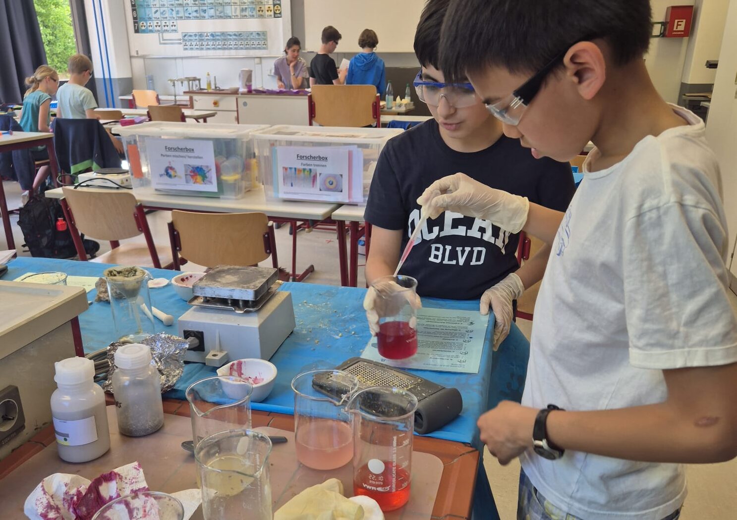 So untersuchten einige Gruppen mithilfe der Chromatografie, wie sich schwarze Tinte in bunte Einzelbestandteile zerlegt, während andere mit der Box „Farben mischen“ herausfanden, wie moderne Drucker aus nur drei Grundfarben nahezu alle Farbtöne erzeugen können – inklusive praktischem Einblick in die Technik eines Handy-Druckers. Andere wiederum testeten mithilfe selbst hergestellter Indikatoren den pH-Wert verschiedener Substanzen oder extrahierten Farbstoffe aus Lebensmitteln. Die große Auswahl ermöglicht es jeder Gruppe, ihrem eigenen naturwissenschaftlichen Interesse zu folgen – ein zentraler Gedanke dieses Konzepts.