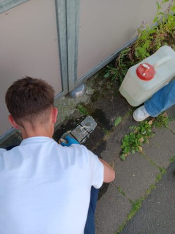 Zeitgleich zur Stolperstein-Verlegung waren Schülerteams in Bischofsheim und Hochstadt unterwegs, um bereits verlegte Stolpersteine zu putzen. Das Messing der Stolpersteine läuft nämlich ohne Reinigung dunkel an und dann werden die Namen und Informationen unleserlich.